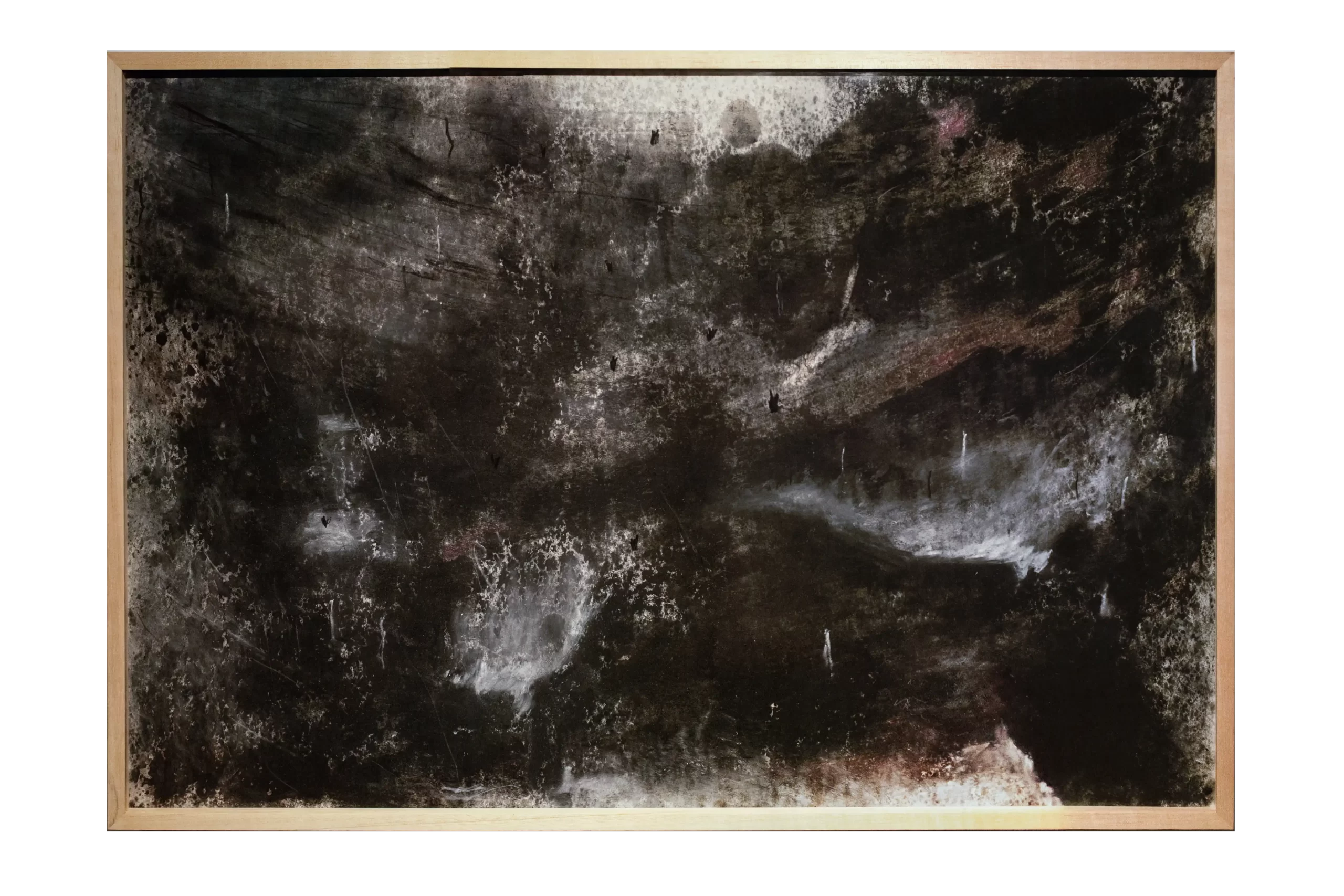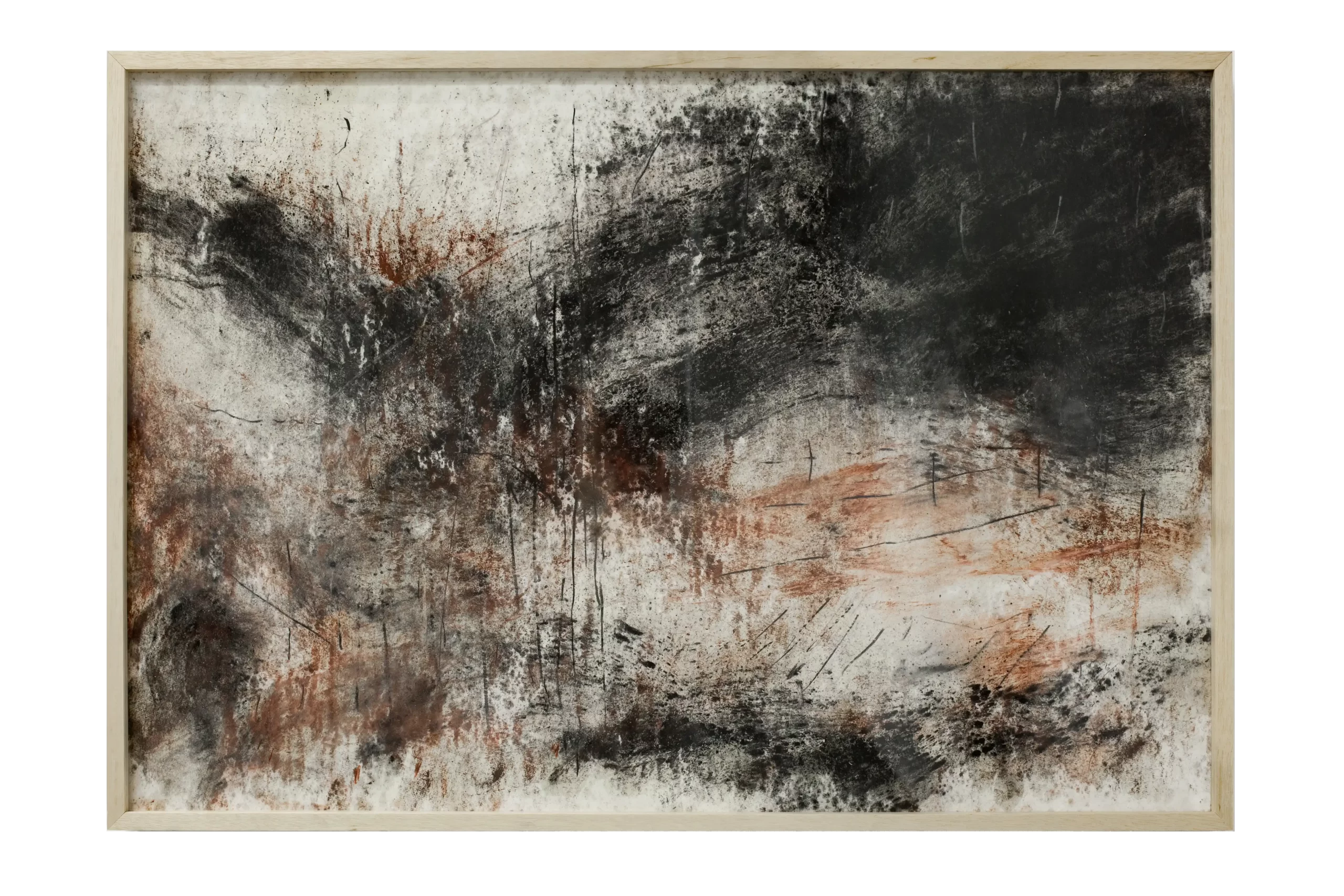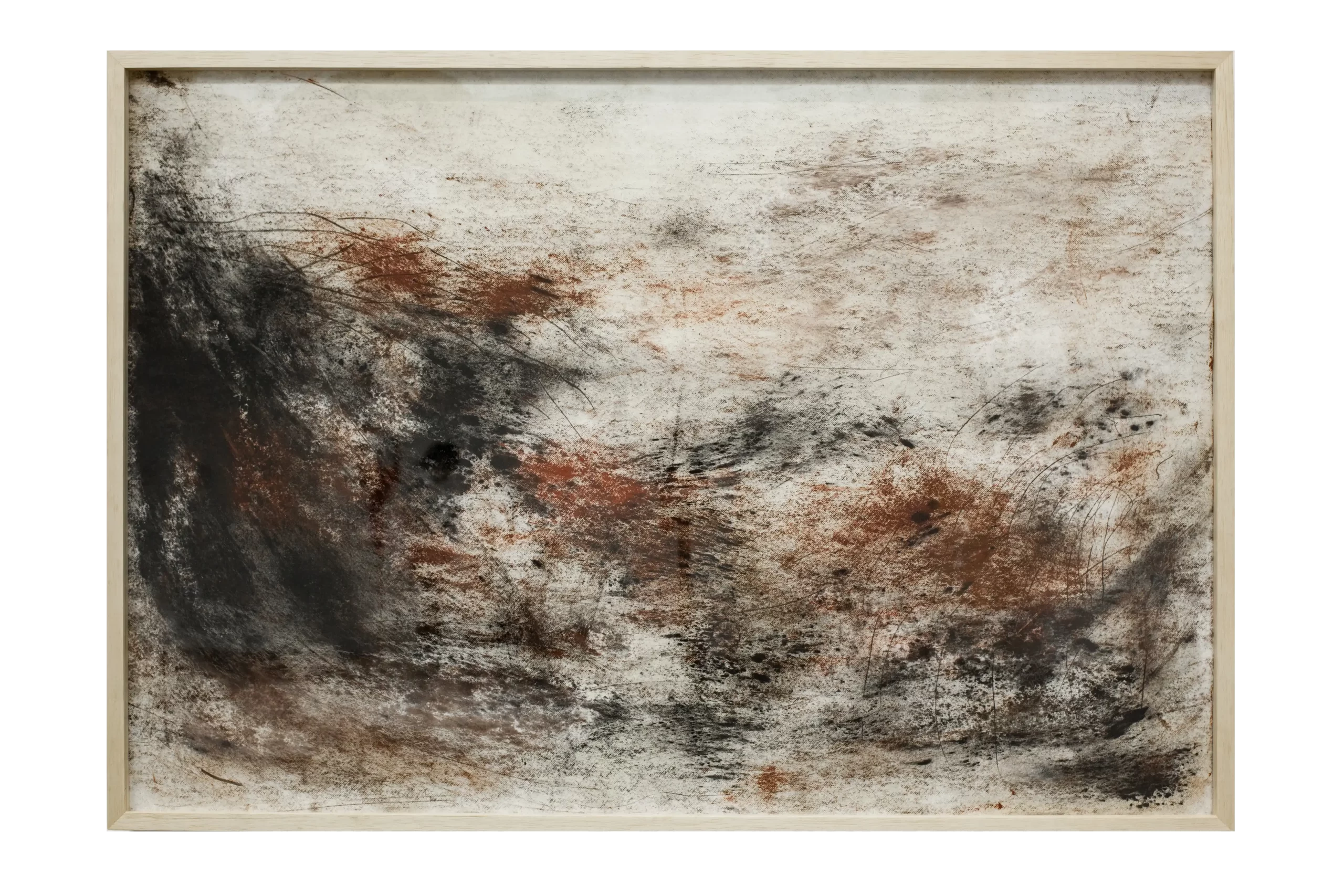 Paisagens Rotas é uma pesquisa visual em desenho que tem início na exploração de diversos materiais – carvão, pigmentos naturais, pasteis, grafite, óleo de linhaça, cera de abelha e parafina. A utilização desses materiais envolve situações acidentais e casuais decorridas dos processos alternativos de aplicação e fixação destes sobre a superfície de papéis mata borrão. A realização das Paisagens envolve uma grande carga de incerteza e provisoriedade gerada pelas características próprias dos materiais escolhidos e pelos processos utilizados.
