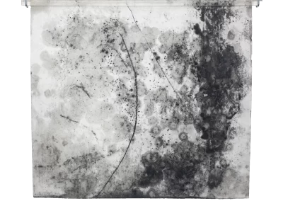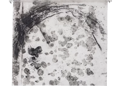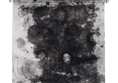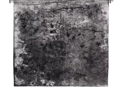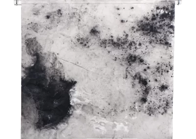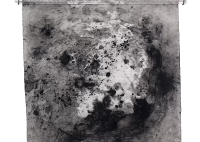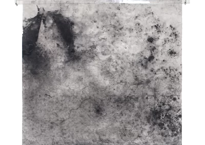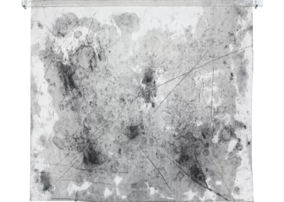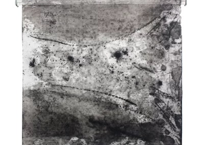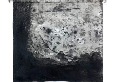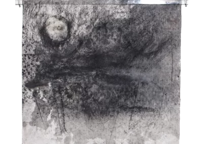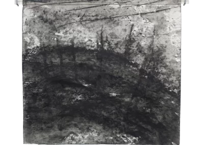 Viagem ao outro lado da noite é um desdobramento do processo de trabalho iniciado na série Paisagens Rotas. A materialidade da superfície, o peso e a espessura do papel dão lugar a um suporte mais fino, menos opaco, que se une a uma mudança na forma de desenhar e no material usado para aplicação e fixação do pigmento e do carvão. Os desenhos diminuem de tamanho, se tornam espécies de janelas para partes de paisagens ocultas. Evidenciam-se a presença mais forte das manchas no lugar de construção dos espaços.